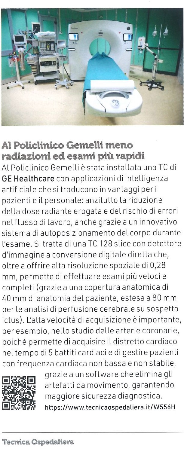 Presso il Policlinico Gemelli è stata installata una nuova TAC di ultima generazione con applicazioni di intelligenza artificiale, progettata per migliorare la qualità diagnostica e ridurre l’esposizione alle radiazioni per i pazienti.
